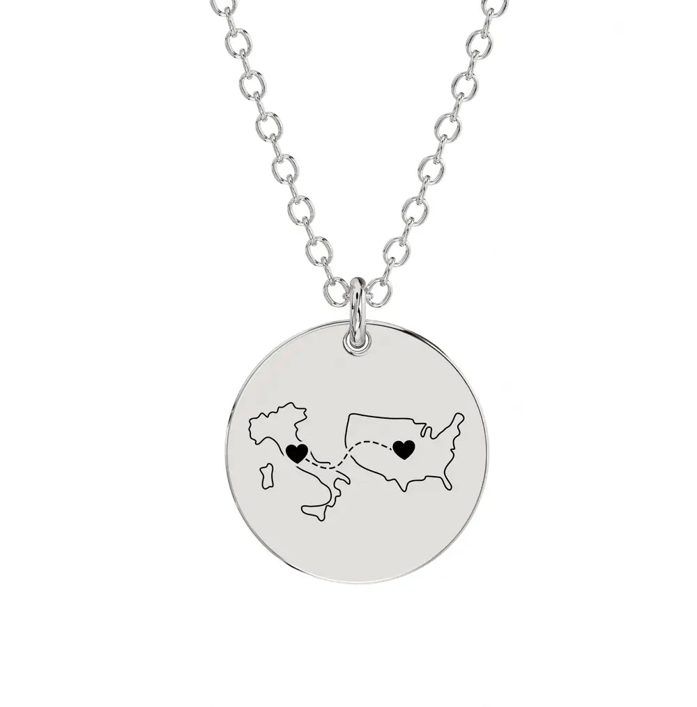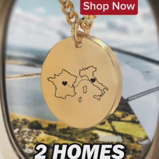 Connect your two worlds with our Dual Maps collection: Personalized memory jewelry featuring the two places that matter most to your heart – whether they're places you call home, locations connecting you with your long-distance partner or friends even with your family , or the two states of your heritage.